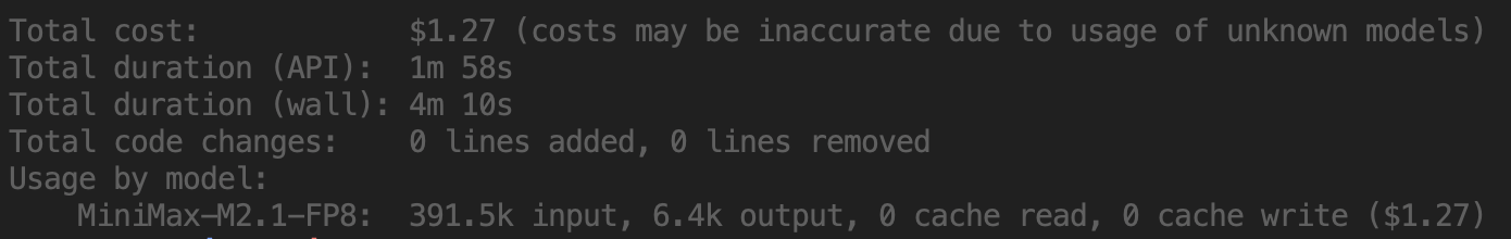 'claude-minimax --verbose -p "Summarize this repository in 6 bullets. Then list 3 files you would inspect first for request routing." --output-format stream-json > /tmp/claude-run.json'